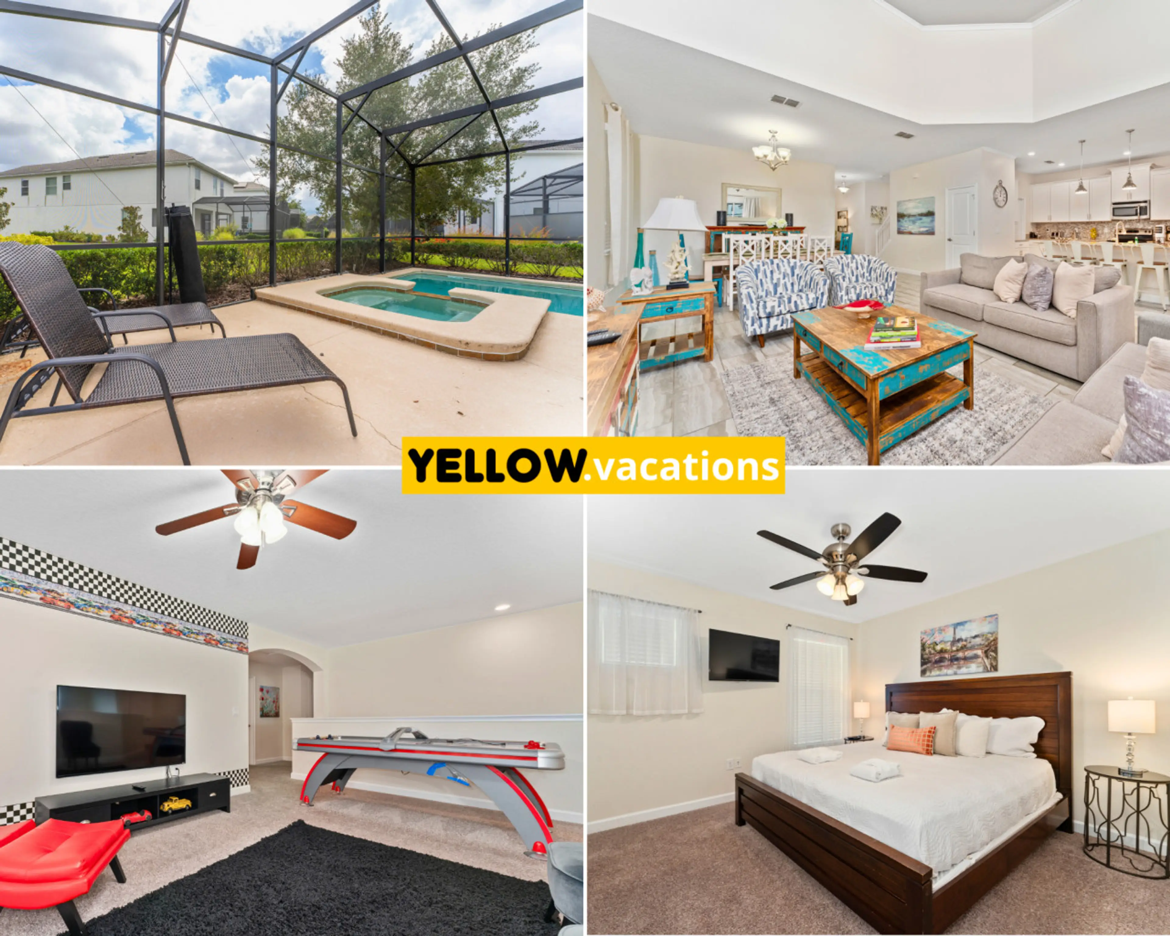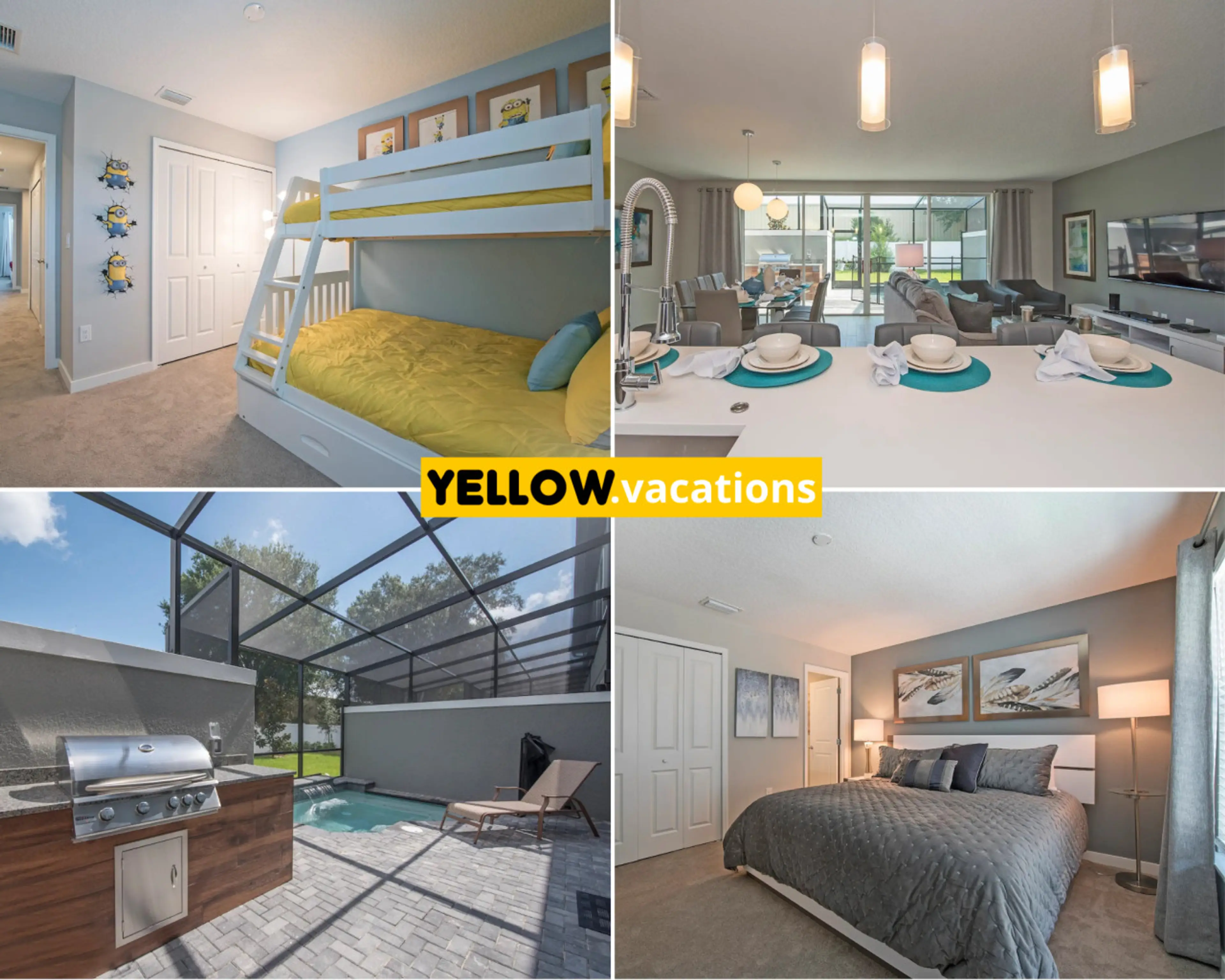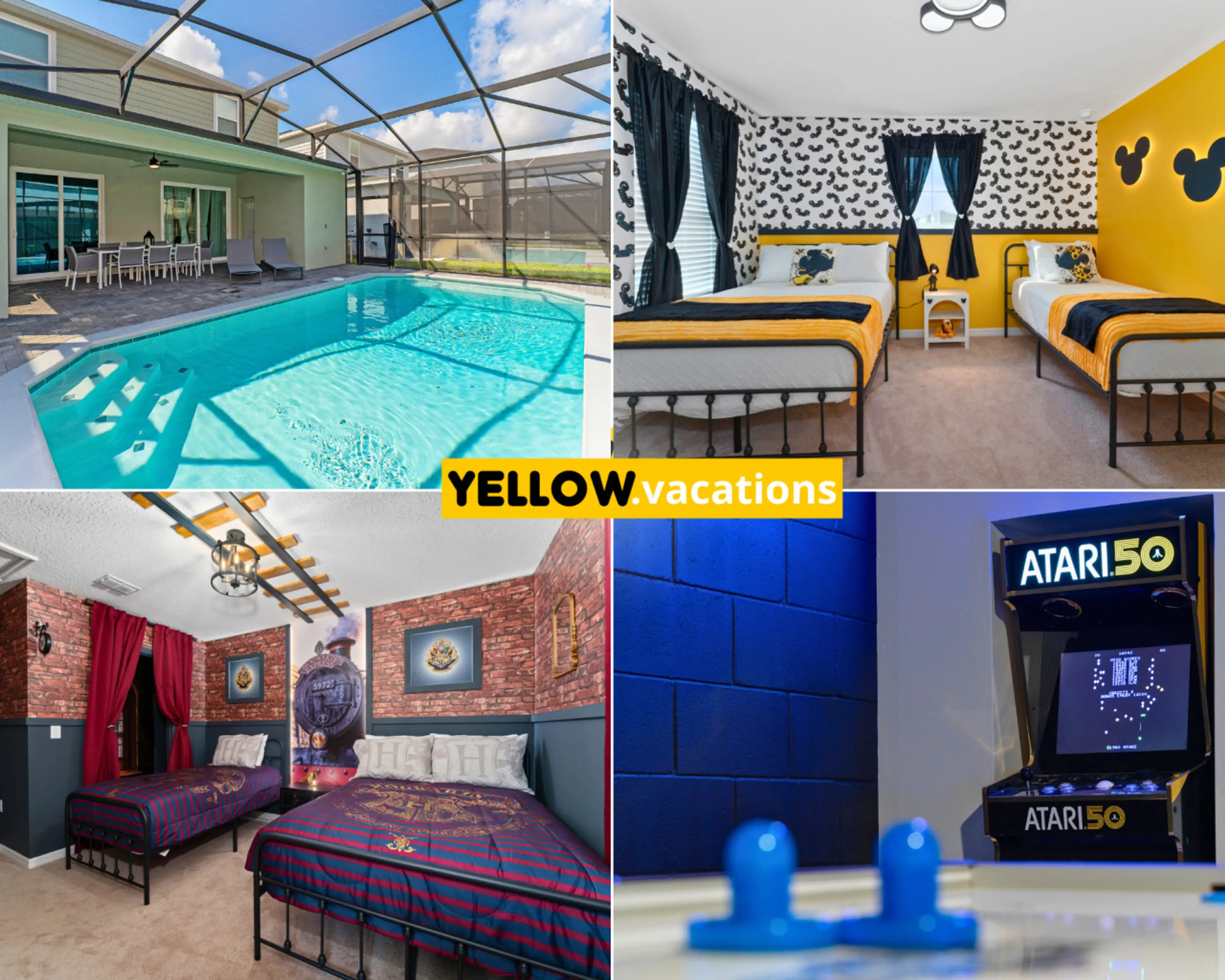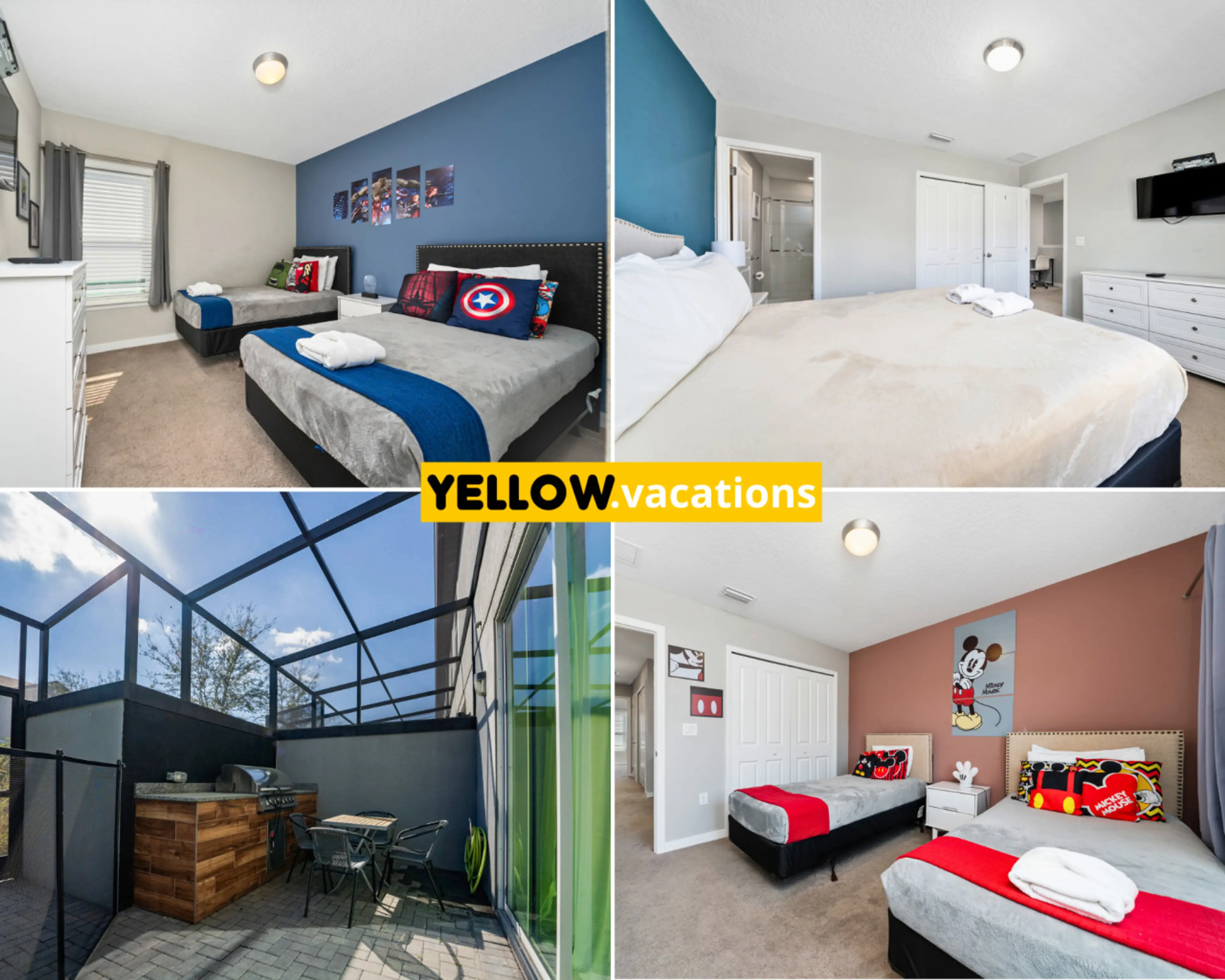 Impressionantes quartos temáticos de 5 quartos com piscina e churrasqueira, perto da Disney!