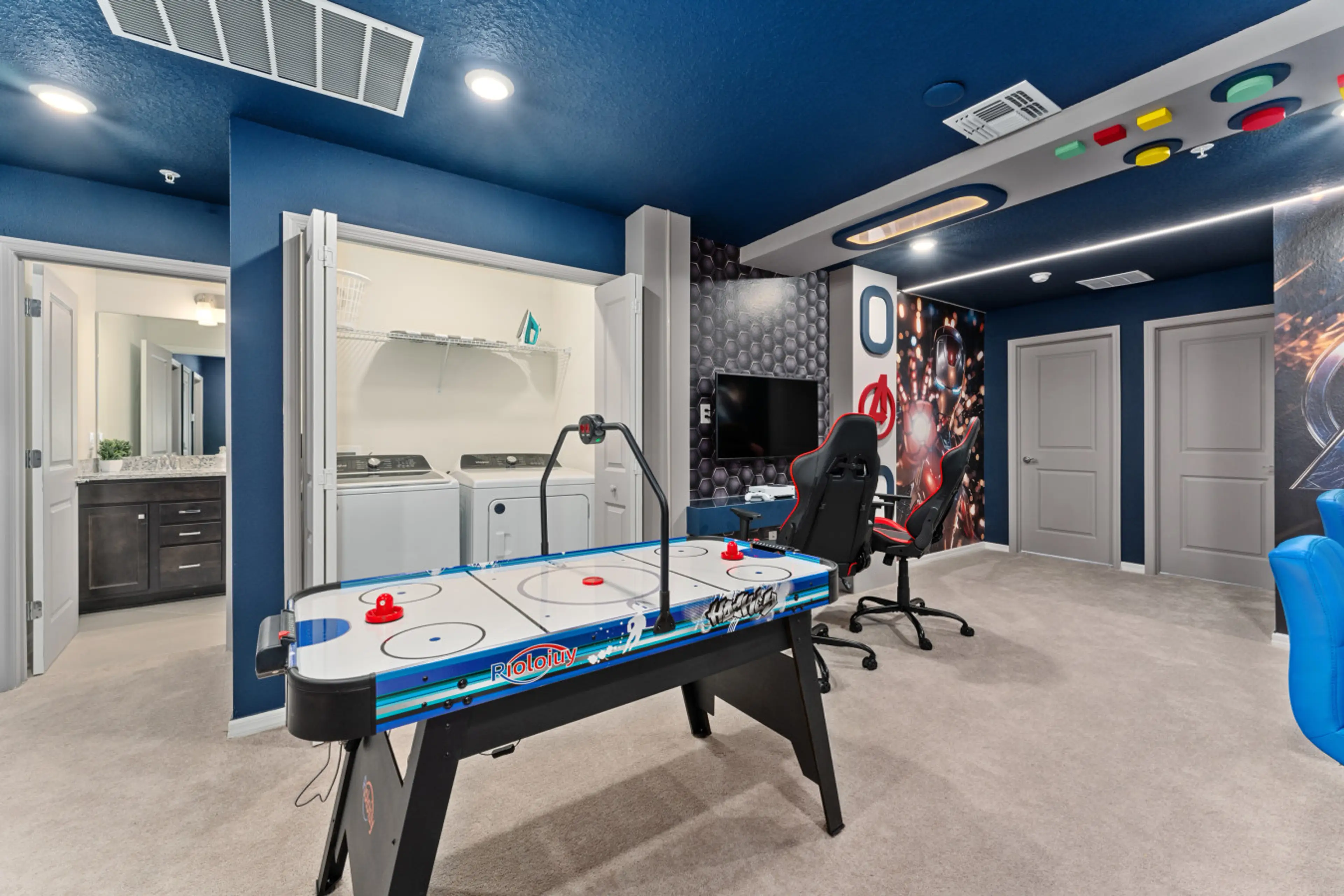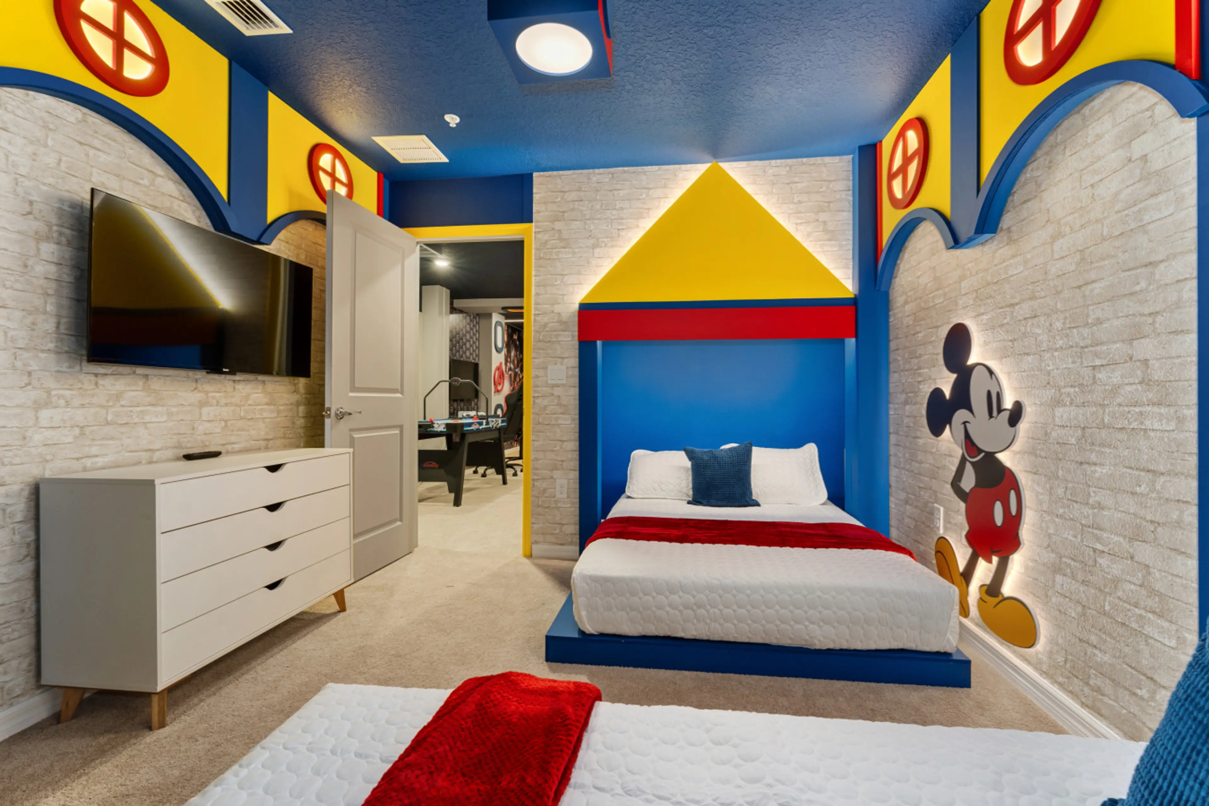 Be our guest in this magical home for 12! With two incredible themed rooms (Mickey Mouse and the Mad Hatter) your guests will be transported to enchanting worlds. The other bedrooms offer cozy comfort, perfect for relaxing after a day full of adventures. Have fun in the epic game room, soak in Flori...
